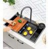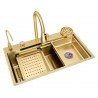 Informatii despre Chiuveta multifunctionala Picatini, cu 4 moduri de spalare, culoare Auriu, spalator pahare, dozator sapun, blat lemn, 2 cuve de clatire: